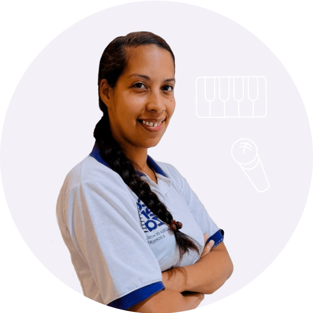 Bachiller en ciencias de la U.E.C. He tenido la oportunidad de dirigir coros polifónicos y ensambles instrumentales de adultos y grupos de niños. Actualmente dicto los cursos de canto y piano en la escuela de música Cadenza.